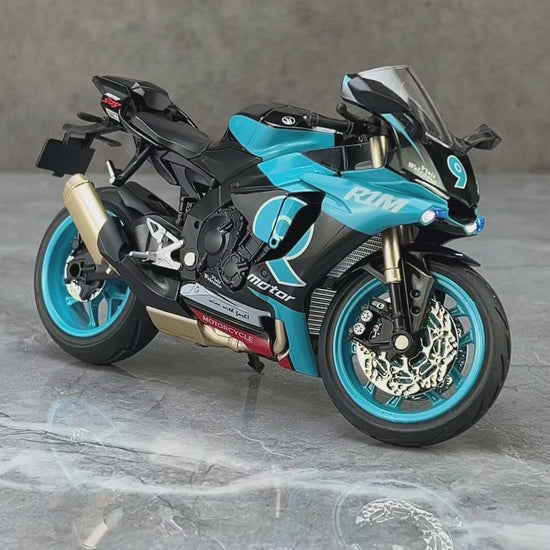 1:12 Yamaha R1M Alloy Diecast Motorcycle Model - Light, Sound, Shock Absorption